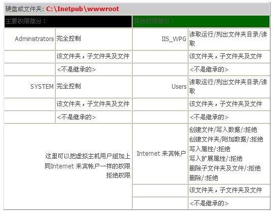 这里着重谈需要的权限,也就是最终文件夹或硬盘需要的权限,可以防御各种木马入侵,提权攻击,跨站攻击等。本实例经过多次试验,安全性能很好,服务器基本没有被木马威胁的担忧了。