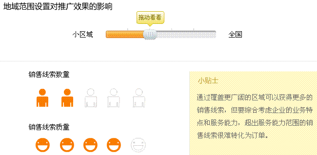 地域设置只要是根据企业业务特性和服务能力进行考虑设置的。小区划范围推广获得的销售线索质量较高。而全国进行推广的销售线索数量高而销售线索质量低。