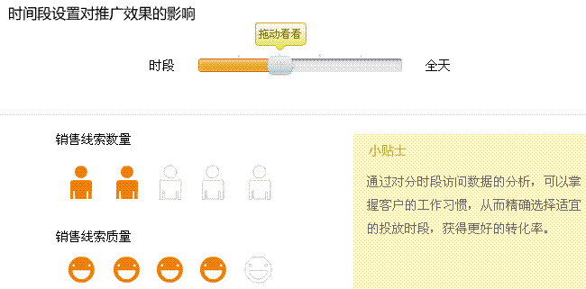 不同产品服务的客户,他们的工作习惯和网络使用时间也不同,认真分析研究分时段访问数据,可以了解掌握客户的网络使用习惯,从而精确选择适宜的投放时段,获得更好的转化率
